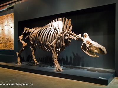 Skelettmontage eines wollhaarigen Nashorns. Gefunden im Rhein-Herne-Kanal. 20.000 Jahre