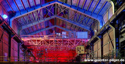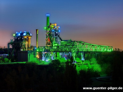 Feste. Besonders lohnend ist eine Nachtwanderung im Fackelschein über das Gelände. Öfen, Kräne und Schornsteine sind dann farbig beleuchtet, eine Lichtinszenierung des britischen