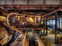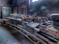 Kippvorrichtungen, den "Kopfwippern" um 180 Grad gedreht und so entleert. Sie wurden anschließend kopfüber zur nächsten Halle gebracht, in der sie wieder aufgerichtet und zurück