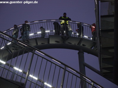 Giftschlackehügel errichtet. Mit 20 Metern Höhe und ihren in den Handläufen eingearbeiteten Lichtbändern stellt die Skulptur eine weithin sichtbare Landmarke dar.